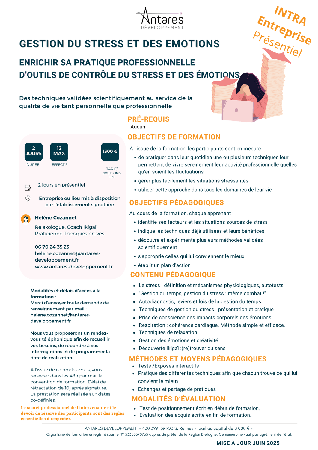 Enrichir sa pratique professionnelle de pratiques de gestion du stress et des émotions