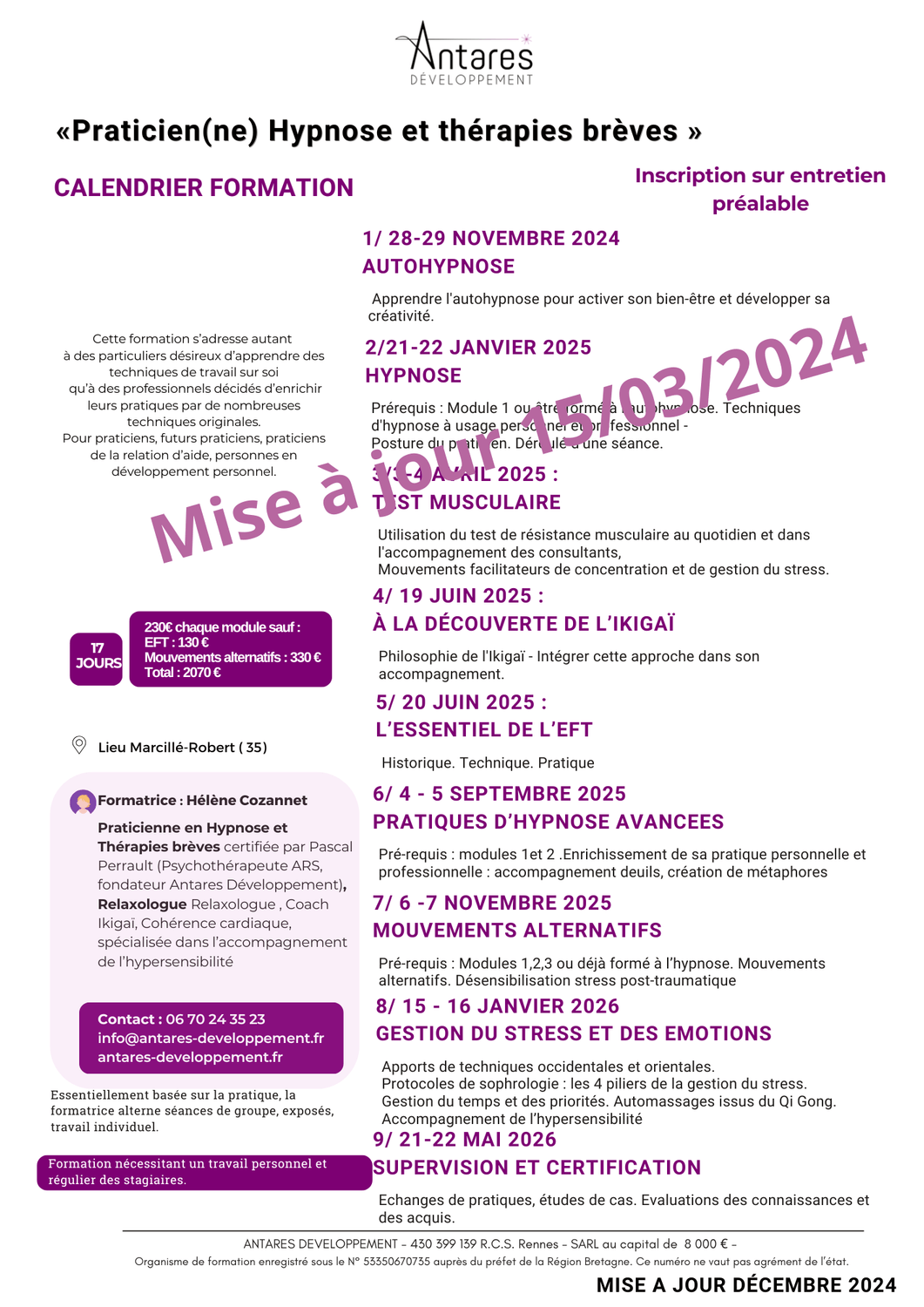 Parcours complet de formation Praticien en Hypnose et thérapies brèves :